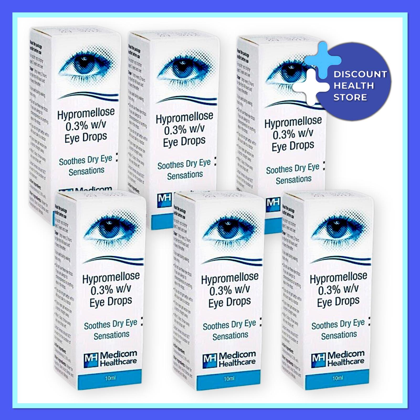 6 Pack – Hypromellose 0.3% Eye Drops For Dry Eyes 10ml – Brand May Vary